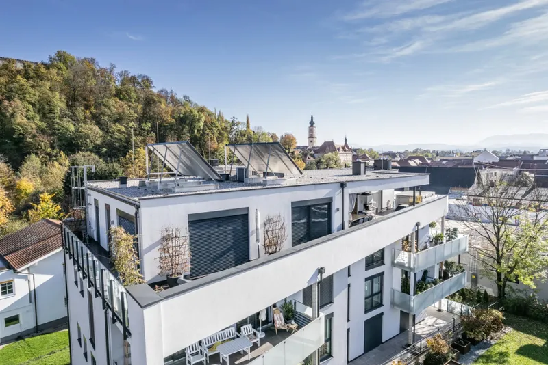 o Penthouse-Wohnung (120 m²): Die exklusive Dachwohnung überzeugt mit großzügigem Grundriss und einer beeindruckenden Aussicht – das Highlight des Hauses.